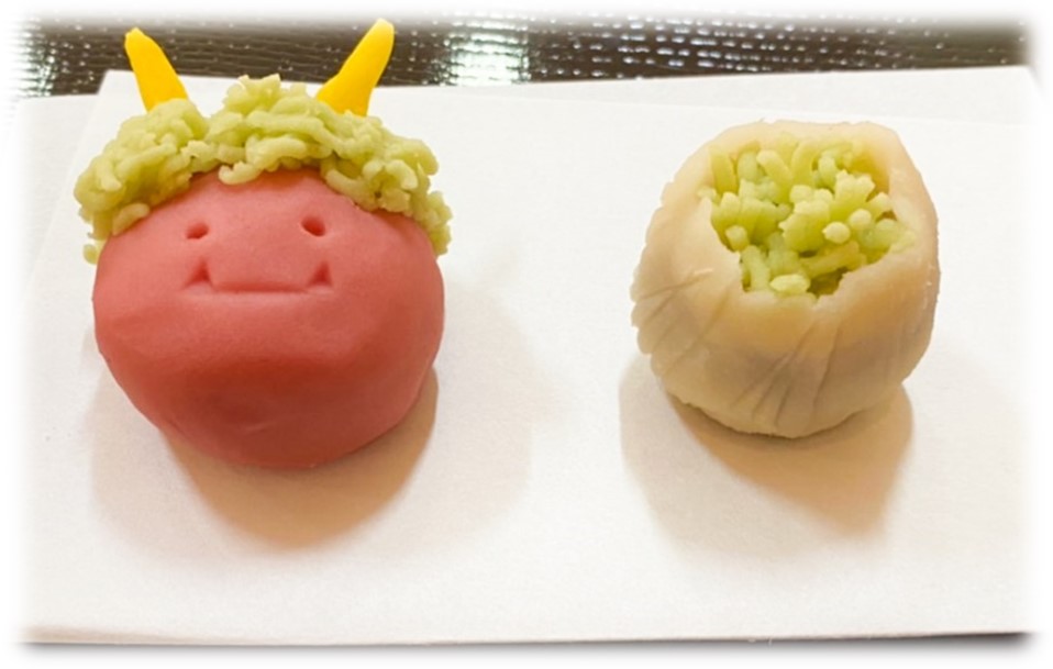 本日より練り切り和菓子の題材が「鬼」、「ふきのとう」になりました。